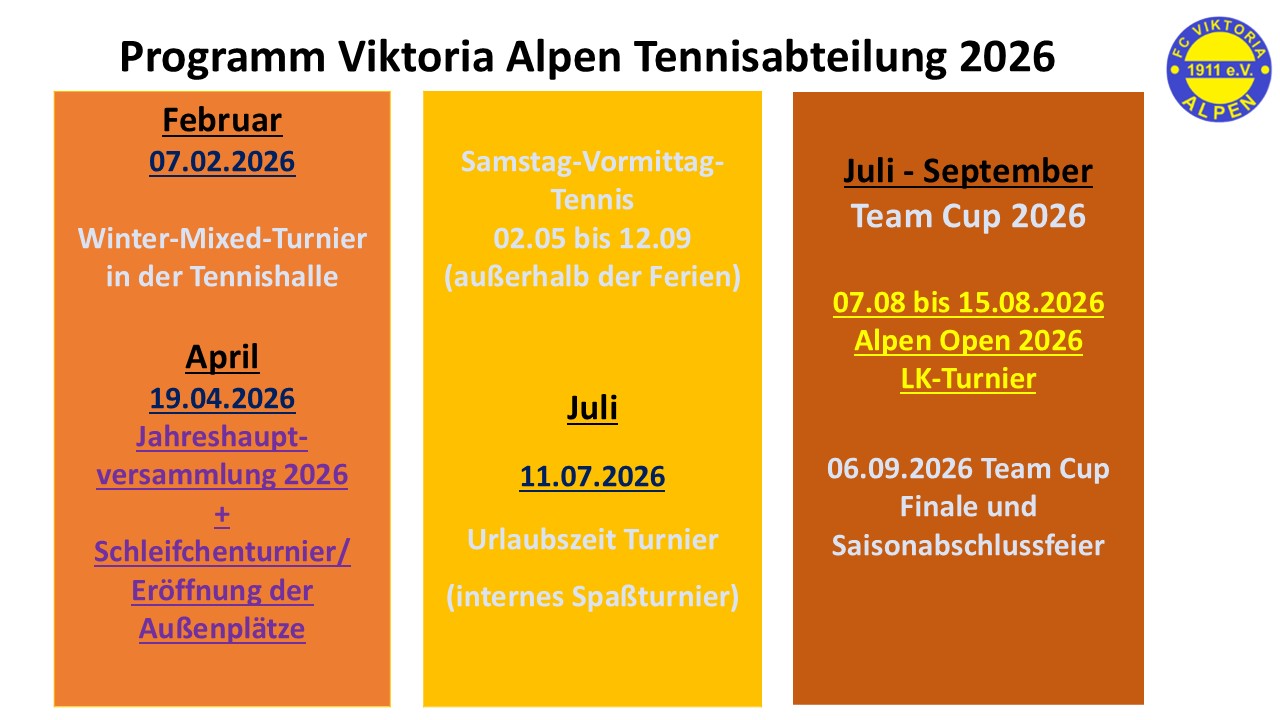 15:00 - 19:00 Mixedturnier 07. Februar um 15:00 - 19:00 Mixedturnier Winter-Mixed-Turnier Anmeldung an Stephan Max, 0175-2796617